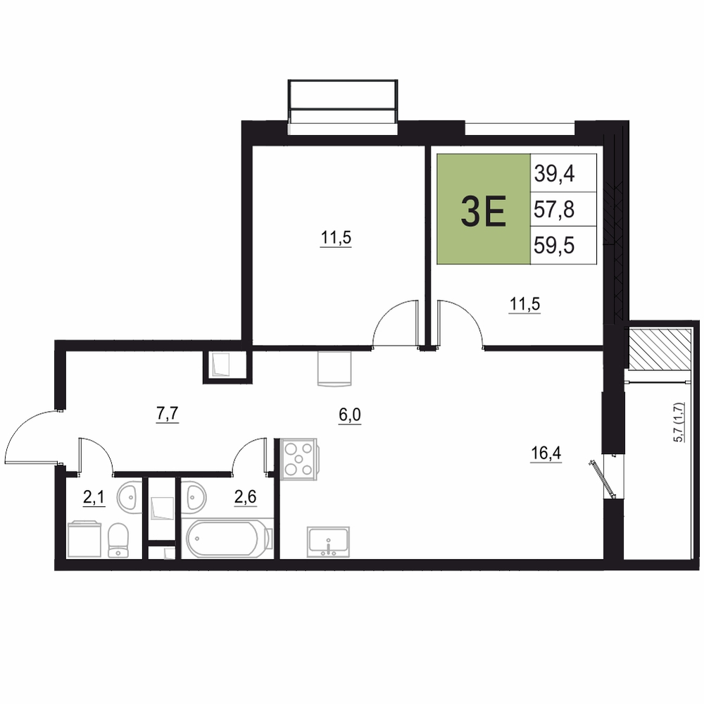 57.8 м2