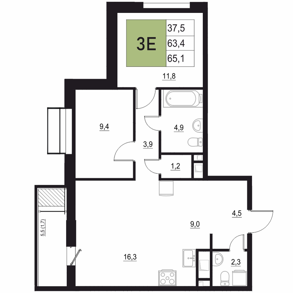 3-комнатная