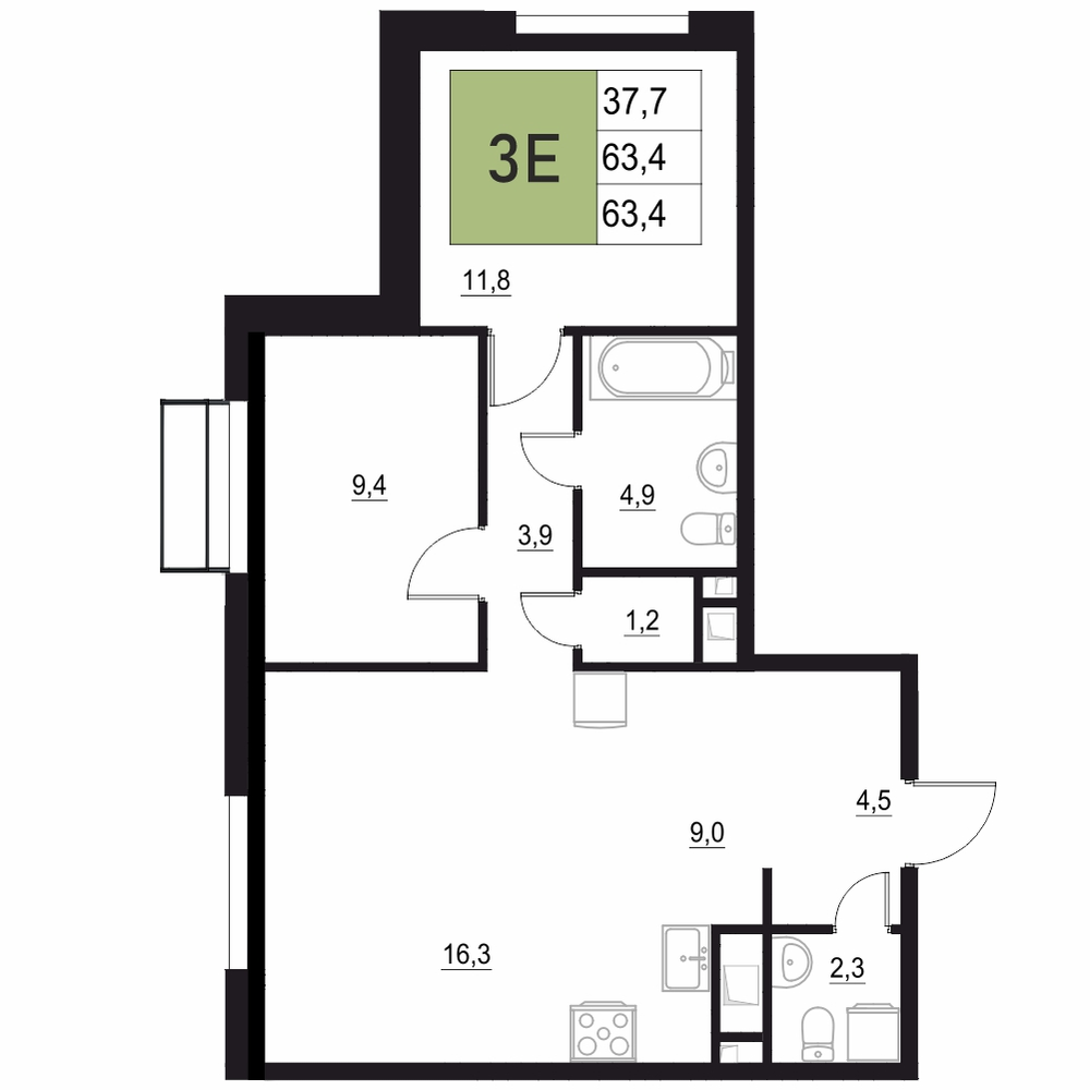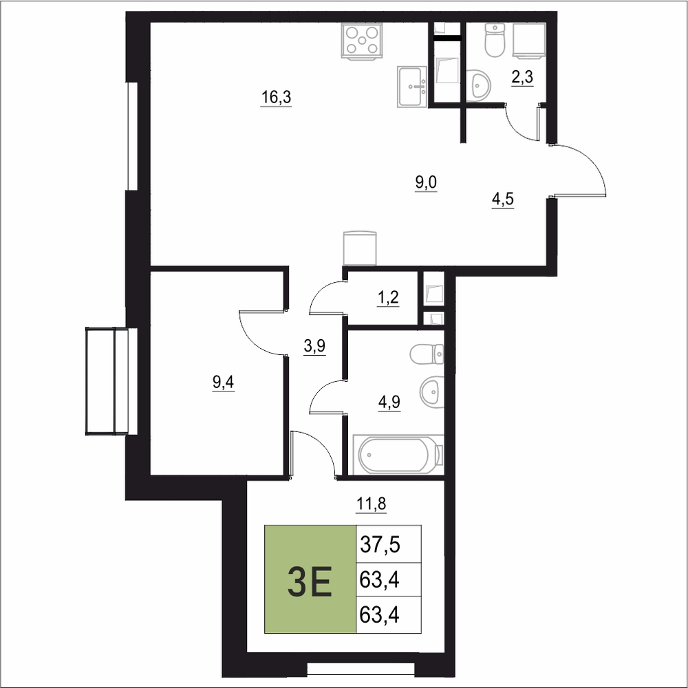 3-комнатная